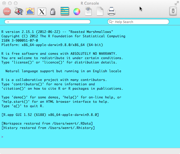 The “>” is where you enter all your R commands. The first commands we have to issue are to read in our data and make it so that we can access it using the column headers. Here’s how you do that: