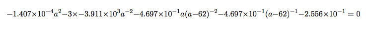 We have the values for A, B, C and E from R’s linear model function so we can substitute those in to give us: