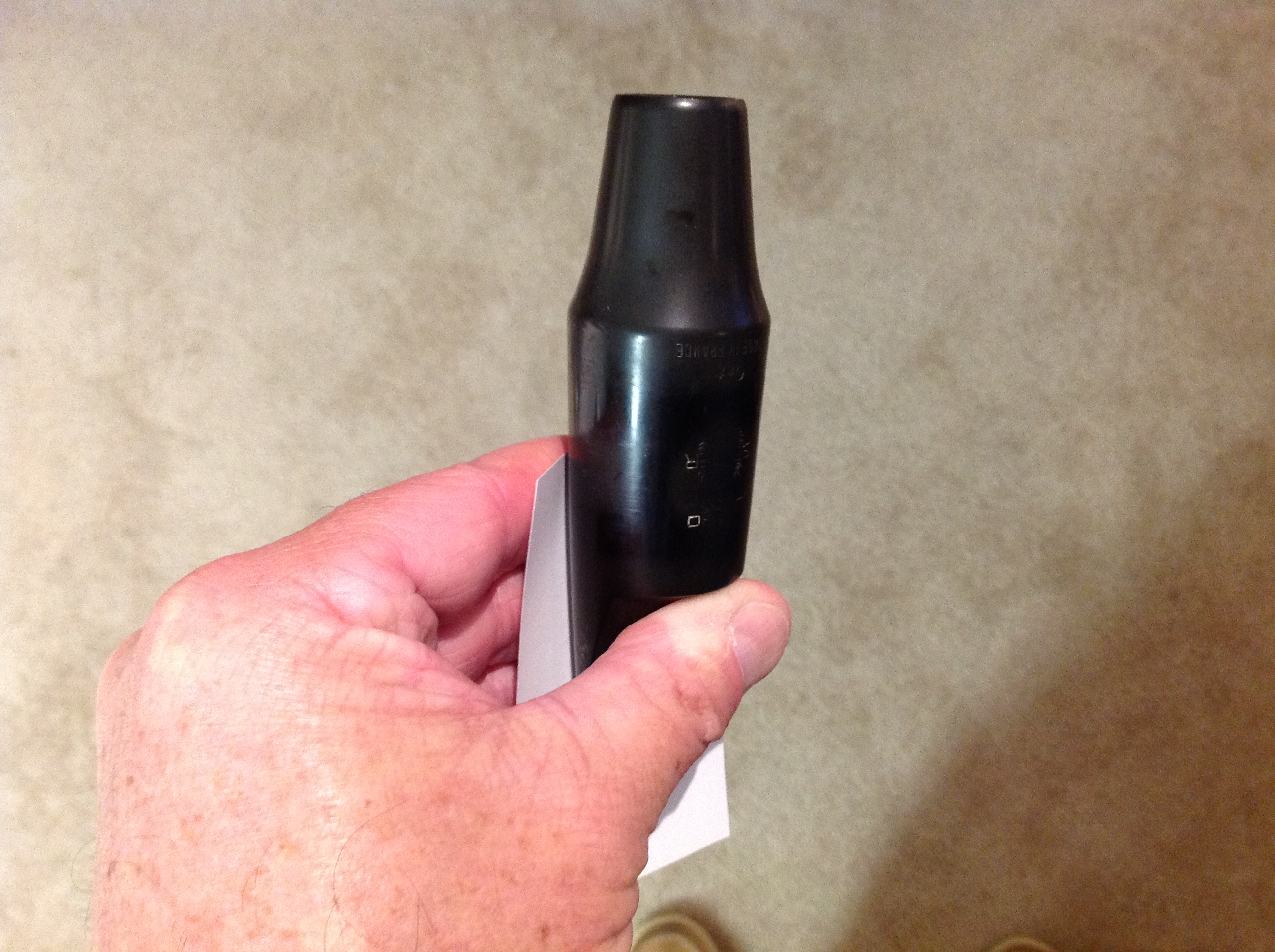 That’s 9.1 cubic centimeters bigger than what we calculated as the theoretical volume if you complete the cone made by the neck. We do have one more adjustment though . . . What do we do with the mouthpiece when we put it on the horn? Right, we put it on the neck and the amount of the neck that sticks into the bore of the mouthpiece must be subtracted out of the 24 cubic centimeters.