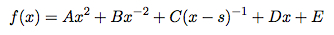 A through E are coefficients that will later be found via some type of regression analysis. The first three terms are the force of drag, induced drag, our adjustment for the particular aircraft’s stall speed (s) plus a linear term and a regression constant.