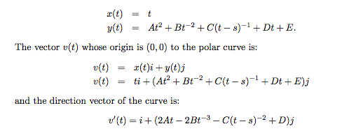 To parameterize f(x) we need to get it into x and y component vectors. The x vector is easy, it’s our airspeed and the y vector is just the function itself. Therefore,