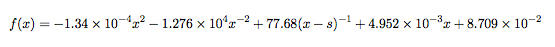 The fourth line causes a summary of the fit to be printed. THIS IS THE GOOD PART!! There’s a bunch of stuff here but the numbers we’re most interested in are under the “Estimate” column plus the “Adjusted R-squared” parameter. The numbers under the “Estimate” column correspond to, in order, E, A, B, C, D in our original model statement. Substituting these numbers in our original model gives us an question that looks like this:
